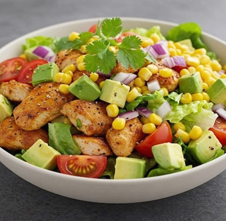 This Southwest Chicken Salad is a vibrant fresh and flavorful dish that’s perfect for a healthy lunch or a light dinner. Loaded with grilled or pan-seared chicken juicy cherry tomatoes creamy avocado sweet corn crisp romaine lettuce and zesty red onions this salad brings bold Tex-Mex flavor in every bite. It’s nutritious satisfying and super easy to make in under 30 minutes.