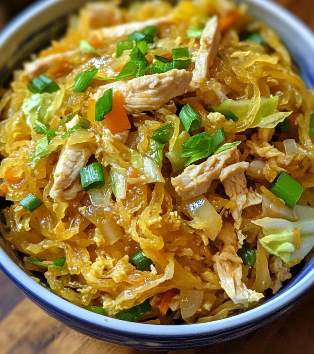Spaghetti Squash Chow Mein with Shredded Chicken