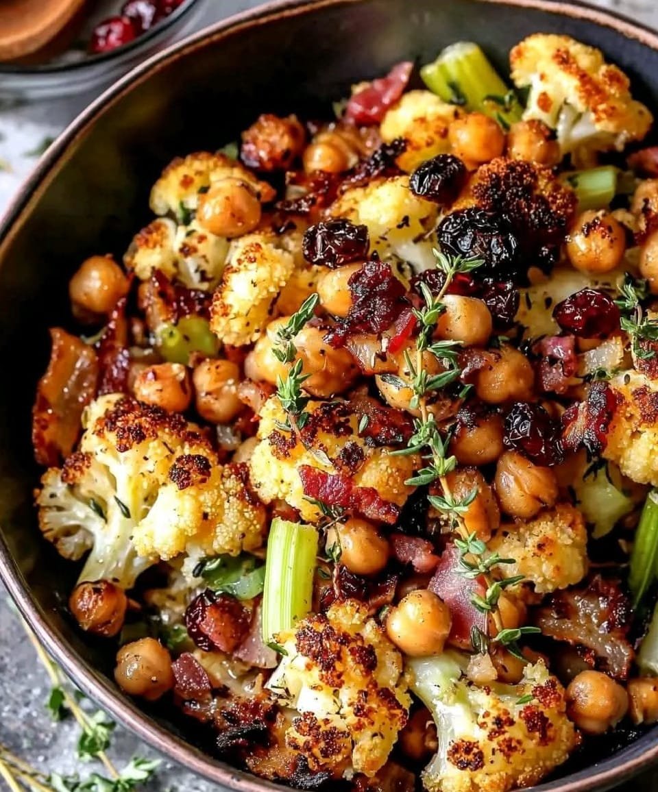A vibrant and flavorful dish featuring roasted cauliflower and chickpeas coated in aromatic spices. This plant-based recipe is a satisfying main course or side, perfect for meal prep or quick dinners. It pairs beautifully with rice, quinoa, or flatbreads like naan.