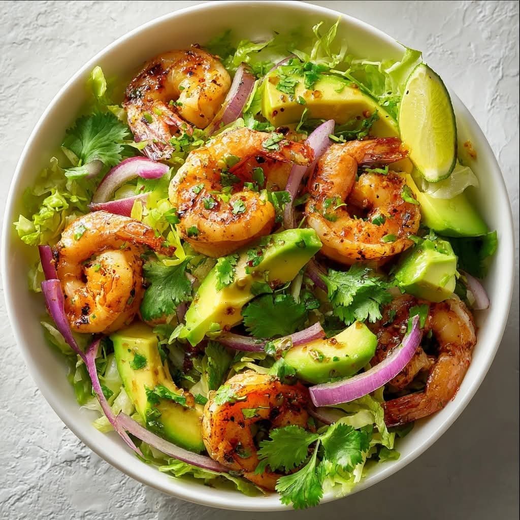 Add the hot shrimp on top. Squeeze fresh lime juice.