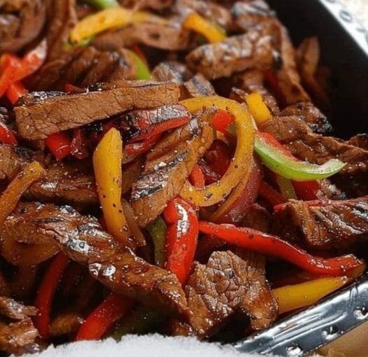Prepare the Fajita Vegetables:While the steak is resting, heat 1 tablespoon of olive oil in a large skillet over medium-high heat.