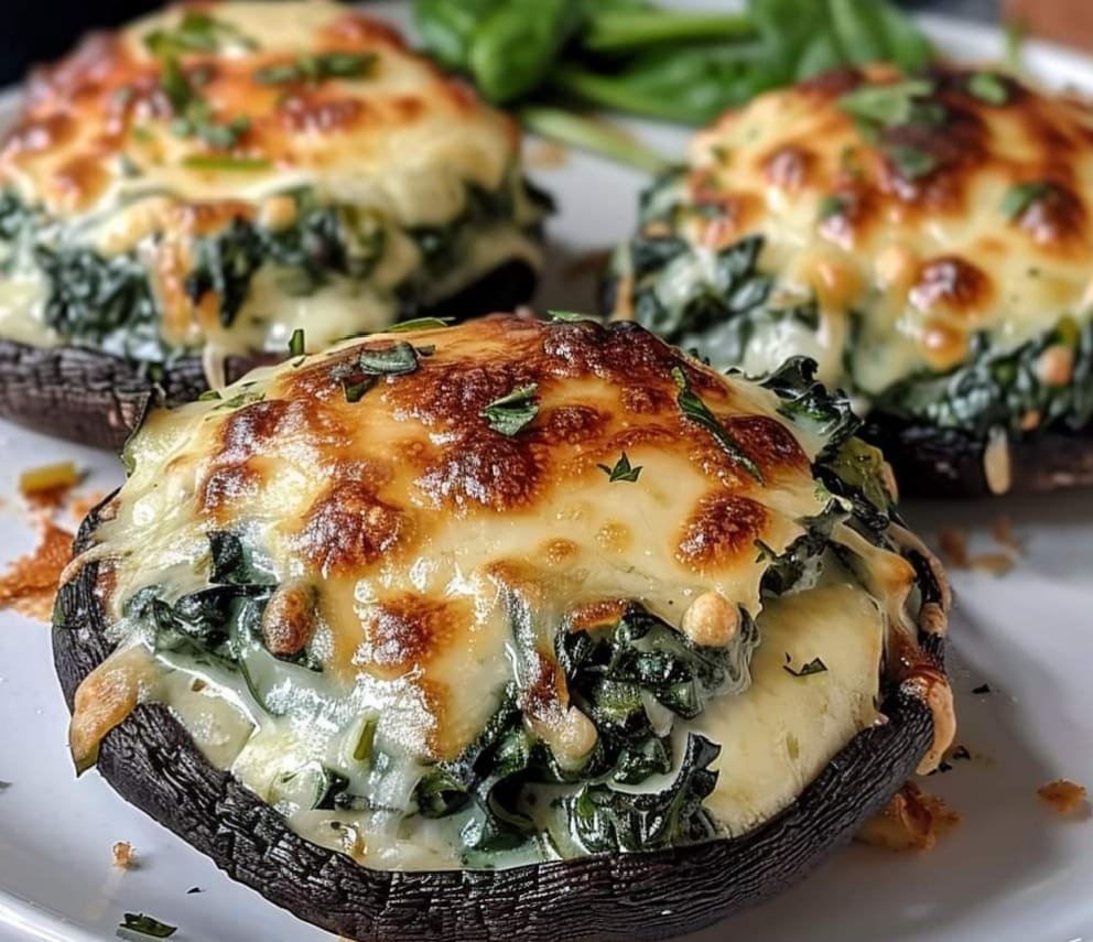 Spinach and Cheese Stuffed Portobello Mushrooms are a delicious, satisfying vegetarian dish. The large, meaty mushrooms are filled with a savory mixture of sautéed spinach, garlic, and a blend of cheeses, then baked until golden and bubbly. This recipe can serve as an appetizer, a side dish, or even a light main course. The earthy flavor of the portobello mushrooms pairs perfectly with the richness of the cheese and the fresh, slightly bitter spinach.