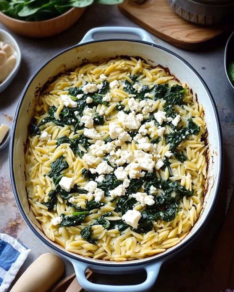 Enjoy your Spinach and Feta Orzo Bake, a comforting and delicious Mediterranean-inspired dish!