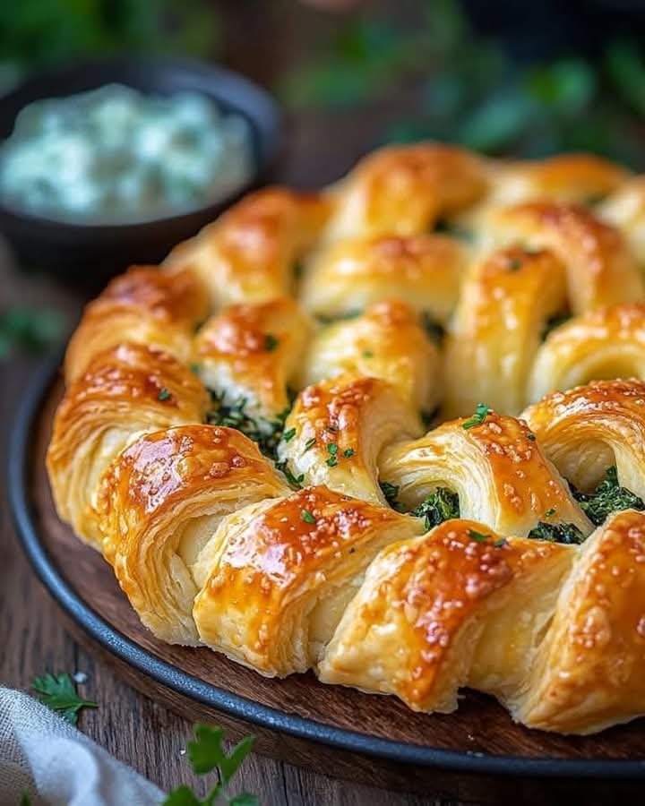 This stunning Spinach and Feta Sun Pie is a delightful puff pastry creation with a creamy, savoury filling. Shaped like a sunburst, it’s perfect for sharing at gatherings or serving as an eye-catching centrepiece.