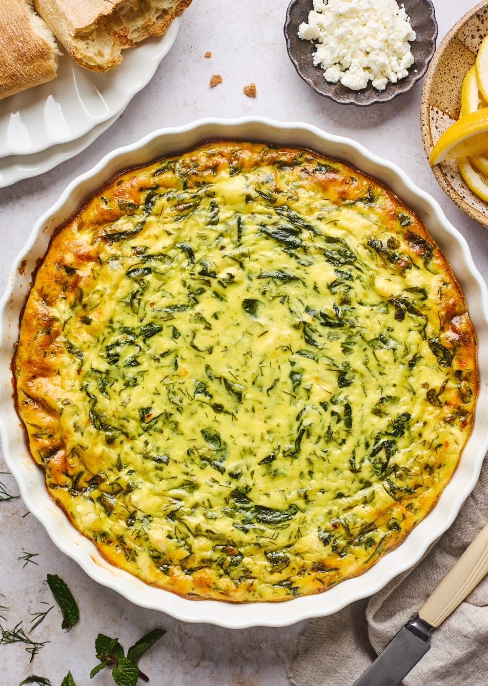 This Spinach and Goat Cheese Quiche is a savory delight, combining the earthy flavors of fresh spinach with the creamy, tangy essence of goat cheese. Nestled in a buttery, flaky crust, this quiche is a harmonious blend of textures and tastes. The spinach is lightly sautéed to bring out its natural sweetness, which pairs beautifully with the rich and slightly acidic goat cheese. Each bite offers a smooth, custard-like filling, enriched with eggs and a hint of nutmeg for depth. Perfect for a brunch gathering, light lunch, or a sophisticated dinner, this quiche serves as a versatile dish that’s as nutritious as it is flavorful. The vibrant green of the spinach not only adds a pop of color but also ensures this dish is packed with vitamins and minerals, making it a guilt-free indulgence.