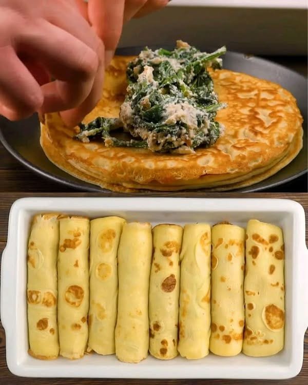 Light, delicate crepes filled with a creamy spinach and ricotta mixture, then baked to perfection—this dish is perfect for brunch, lunch, or a cozy dinner. These savory stuffed crepes are rich in flavor and simple to prepare, making them a great choice for both everyday meals and special occasions. Serve them with a side salad or a drizzle of sauce for a complete, satisfying meal.