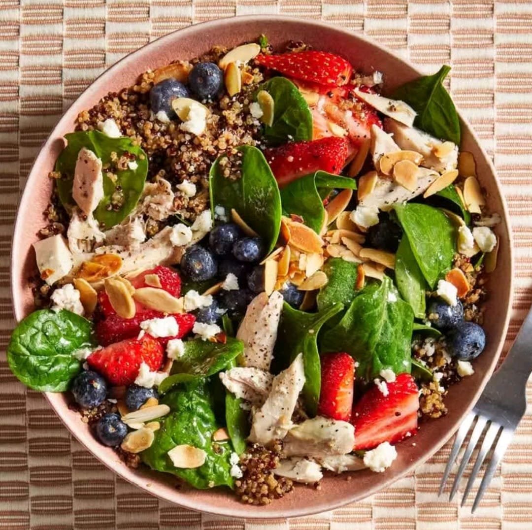 Spinach Salad with Quinoa, Chicken, and Fresh Berries