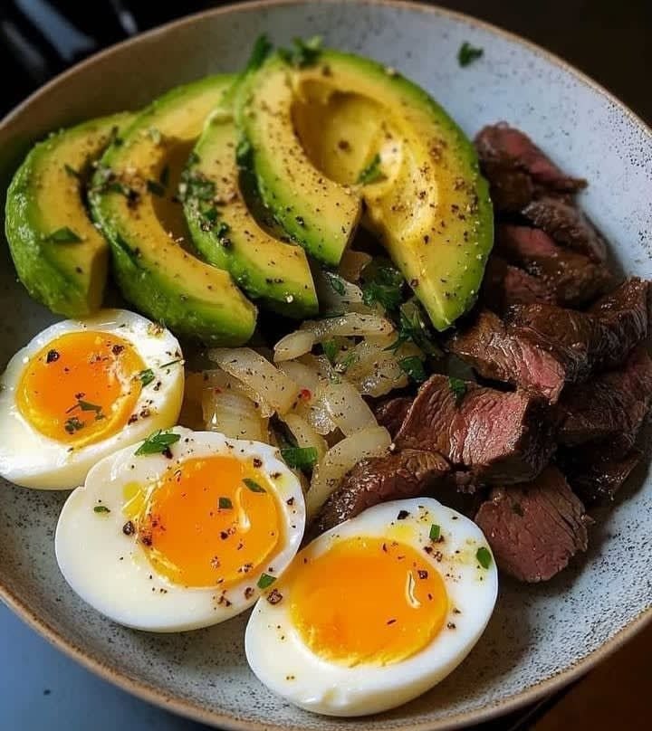 This Steak and Avocado Protein Bowl is a hearty, Mediterranean-inspired meal packed with lean protein, healthy fats, and fresh veggies. Juicy seared steak, creamy avocado, and a zesty lemon-herb dressing make it perfect for meal prep, post-workout, or a quick healthy dinner.