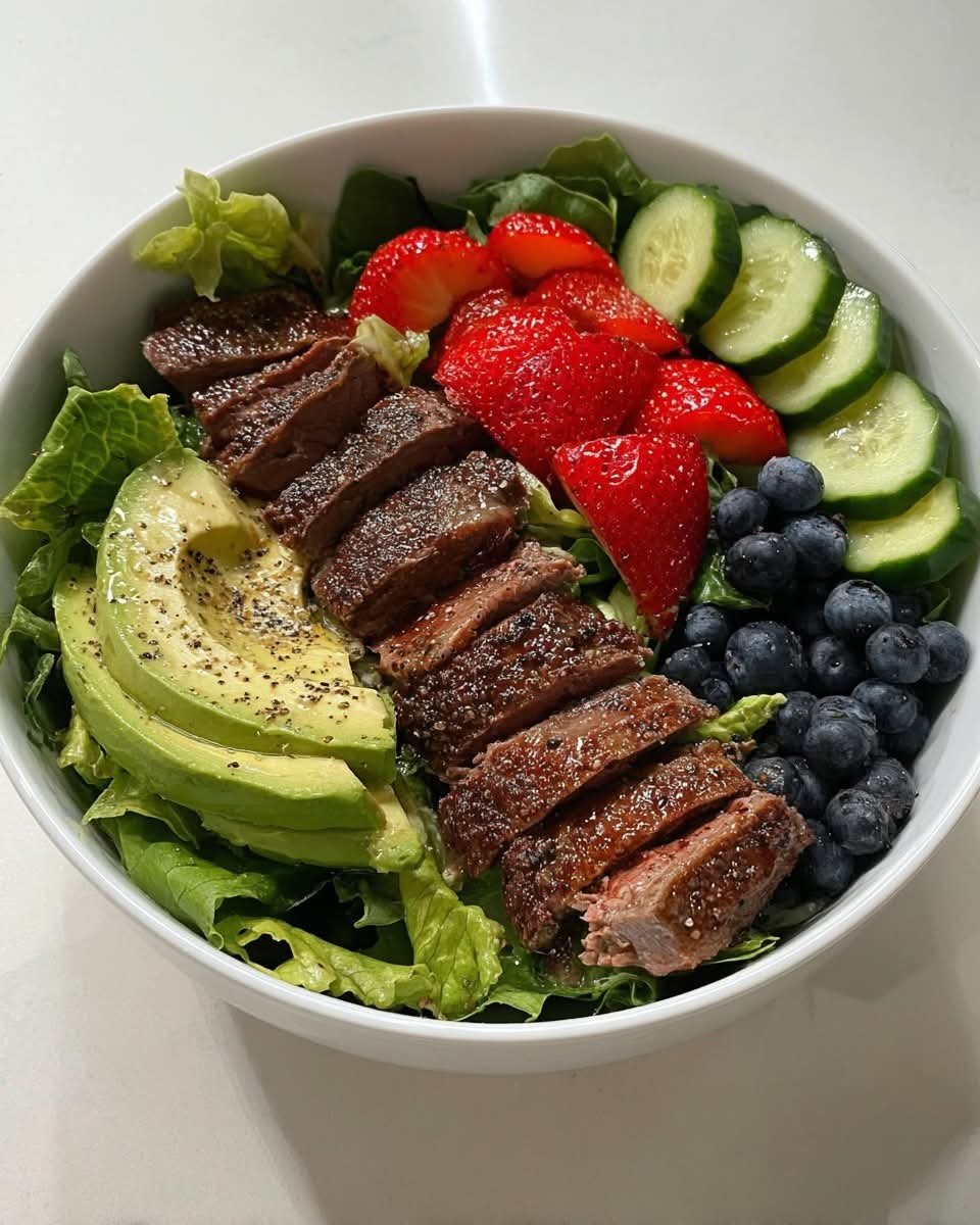 Looking for a bold, nutritious, and satisfying meal? This Steak and Berry Power Salad with Avocado combines juicy grilled steak, sweet fresh berries, creamy avocado, and crisp greens for a perfect balance of flavors and textures. It’s a high-protein, nutrient-rich salad ideal for lunch, dinner, or post-workout fuel.
