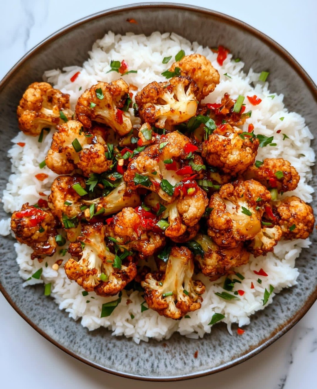 Finely grated cauliflower stir-fried with garlic, soy, and a hint of chili, finished with a sticky-sweet glaze. Low-carb, nutritious, and packed with flavor. Perfect Mediterranean-Asian fusion!