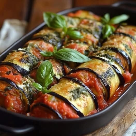 *Tender roasted eggplant slices rolled up with creamy ricotta-spinach filling, baked in a flavorful tomato basil sauce — a vegetarian classic with Italian soul!*
