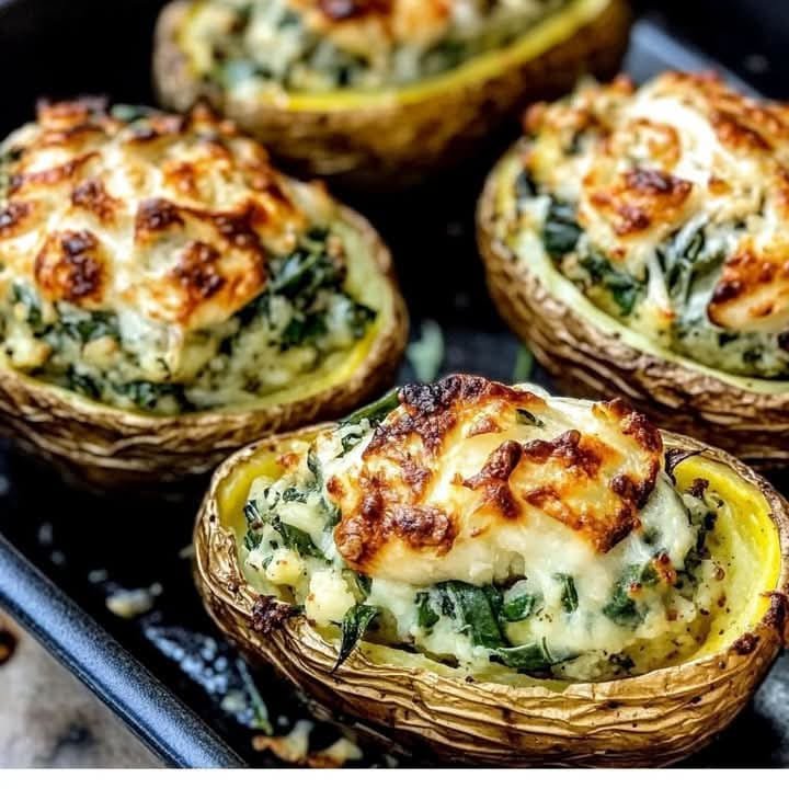 high-protein vegetarian stuffed potatoes recipe with emojis