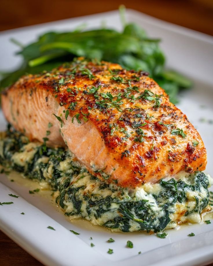Tender salmon fillets are filled with a flavorful mixture of sauteed spinach, creamy feta cheese, and garlic, then baked to perfection.It’s light yet satisfying, elegant enough for guests, and ready in under 40 minutes.