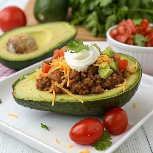 Stuffed Taco Avocado Bowls are a low-carb, keto-friendly twist on classic tacos. Creamy avocados are halved and filled with seasoned taco meat, fresh veggies, cheese, and your favorite toppings. This quick and flavorful dish makes a perfect lunch or light dinner packed with protein and healthy fats.