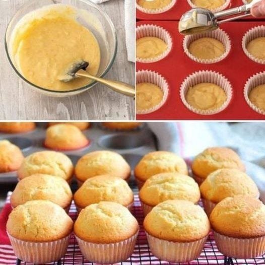 Muffin tin filling: Fill muffin tin two thirds of the way with batter. Keep the fill level down to avoid sunken or level surfaces. A conventional ice cream scoop with a lever is the easiest to use.