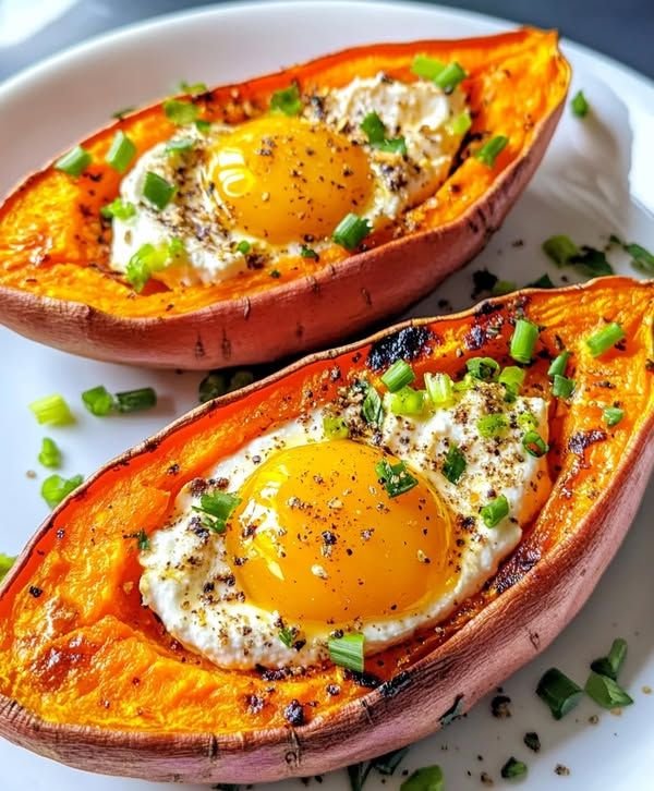 These Sweet Potato Breakfast Boats are a wholesome, decadent breakfast or brunch idea. Tender roasted sweet potatoes are halved and topped with creamy whipped ricotta, a drizzle of maple-herb glaze, and fresh herbs for a bright, slightly sweet Mediterranean-inspired flavor. They’re naturally non-spicy, high in protein, and visually stunning for serving.