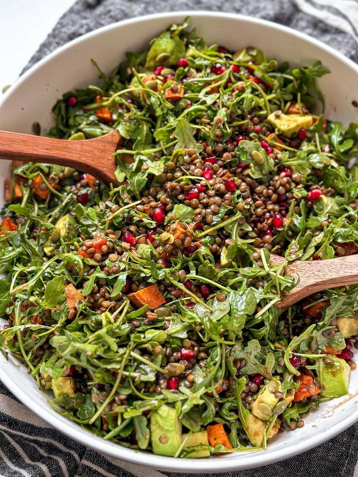 This salad combines nutty farro, roasted sweet potatoes, protein-rich lentils, and creamy avocado, tossed in a light citrus-herb dressing. It’s filling, healthy, and bursting with textures and flavors — sweet, earthy, and refreshing all at once.