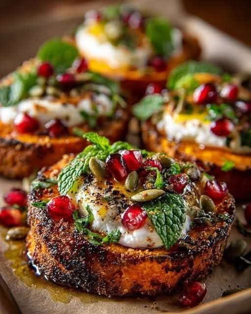 Sweet Potato Toast with Labneh, Pomegranate, and Pumpkin Seeds is proof that simple ingredients can create something vibrant and satisfying. The roasted sweet potato provides a naturally sweet base, the yogurt adds creaminess, and the toppings bring crunch, freshness, and balance.