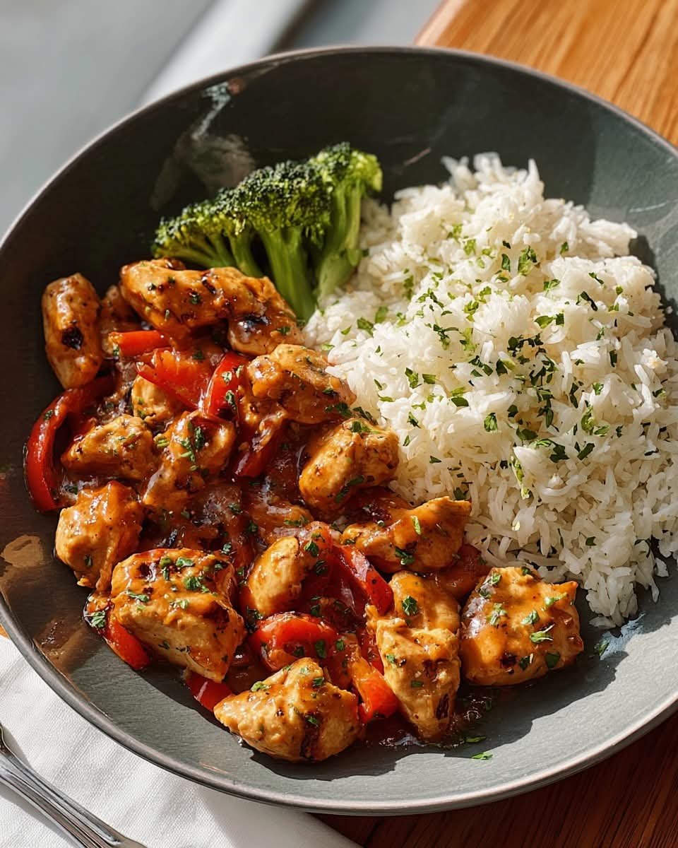 This Sweet & Savory Chicken Stir-Fry Bowl brings together tender chicken pieces, crisp broccoli, and perfectly cooked rice—all coated in a glossy sauce that balances sweetness, saltiness, and a hint of tang. It’s a fast weeknight dinner that tastes restaurant-quality and uses simple ingredients already in most kitchens. Great for meal prep, customizable, and kid-friendly.