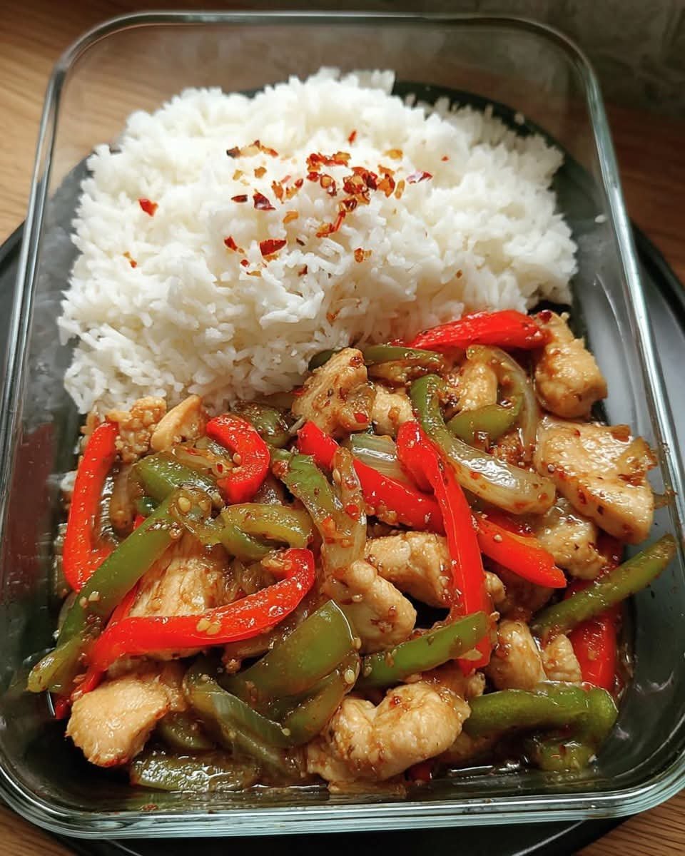 A quick, flavorful dish featuring tender chicken tossed in a glossy sweet-and-spicy sauce with crisp bell peppers, served over fragrant jasmine rice. Perfect for busy weeknights — ready in under 40 minutes and better than takeout!