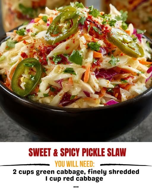 Sweet and Spicy Pickle Slaw is not your average coleslaw. The combination of creamy mayonnaise, bright pickle juice, gentle sweetness, and a touch of heat creates a bold and balanced side dish that stands out on any table.