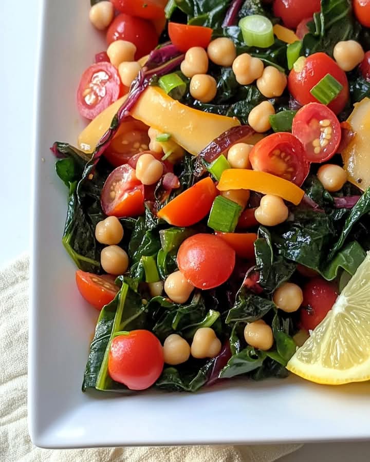 This hearty, healthy dish combines the earthy flavors of Swiss chard, the nutty creaminess of garbanzo beans (chickpeas), and the bright acidity of tomatoes. It’s packed with plant-based protein, fiber, vitamins, and minerals. Perfect as a light lunch, a side dish, or even a vegetarian main course when served with rice or crusty bread.