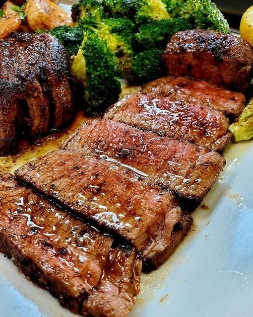 2. Heat olive oil in a large skillet over medium heat. Once hot, add the steak and sear for 4 to 5 minutes on each side until medium-rare or desired doneness. Remove steak from pan and set aside.3. Add the garlic and shallots to the same skillet and saute until fragrant and softened, 1 to 2 minutes.