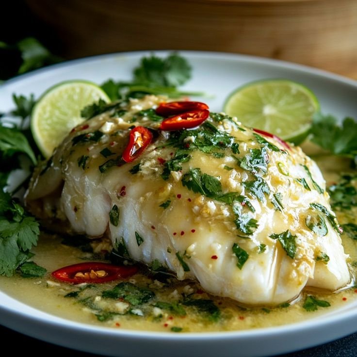 Thai Lime-Garlic Steamed Fish with Coconut Lemongrass Sauce