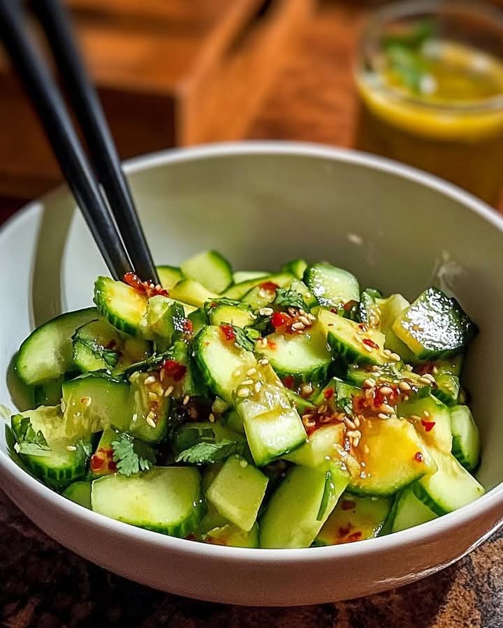 Thai Smashed Cucumber Salad, or Tum Taeng, is a refreshing, spicy-sour salad bursting with flavor. Made by lightly smashing cucumbers to absorb a bold dressing of lime, fish sauce, chili, garlic, and sugar, it’s commonly eaten as a side dish with sticky rice and grilled meats in Thai cuisine. This salad is a cousin to the famous Som Tum (green papaya salad) but easier to prepare and just as addictive.