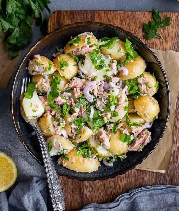 This Tuna & Baby Potato Salad is a hearty, protein-packed, and nutrient-rich dish that makes a perfect lunch or light dinner. Tender baby potatoes are combined with flaky tuna, crisp vegetables, and a light dressing, creating a balanced mix of flavors and textures. It’s a healthier alternative to traditional potato salads, as it skips heavy mayo in favor of a zesty olive oil and lemon dressing.