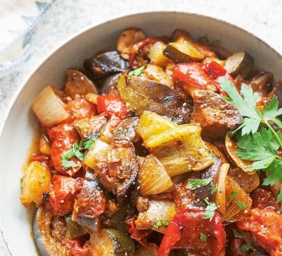 This is a hot, warm, or cold vegan cuisine from Cyprus that is made by roasting vegetables with a vibrant blend of herbs and spicy, sweet spices.