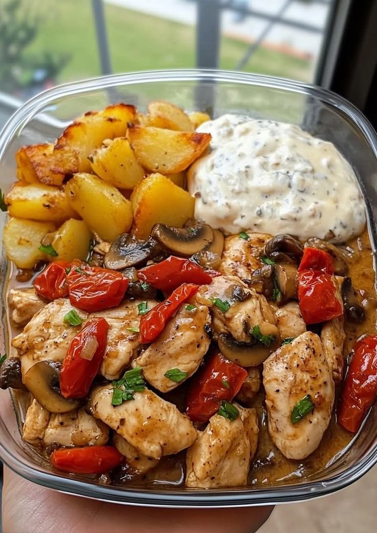 This Tuscan Garlic Chicken Stir-Fry is rich, creamy, and bursting with flavor. Tender Chicken is cooked with garlic, earthy mushrooms, and tangy sun-dried tomatoes, all coated in a luscious creamy sauce for a restaurant-style dish at home.Perfect for comfort dinners, high-protein meals, or meal prep.