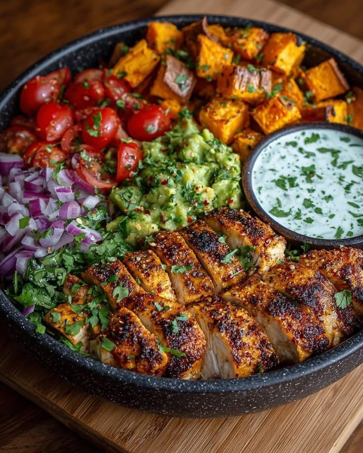 This Ultimate Grilled Chicken & Sweet Potato Bowl is the perfect balance of protein, healthy carbs, and fresh flavors. Juicy Chicken, roasted Sweet Potato, and a vibrant Avocado salsa come together for a nourishing and satisfying meal.Perfect for meal prep, clean eating, or post-workout fuel.