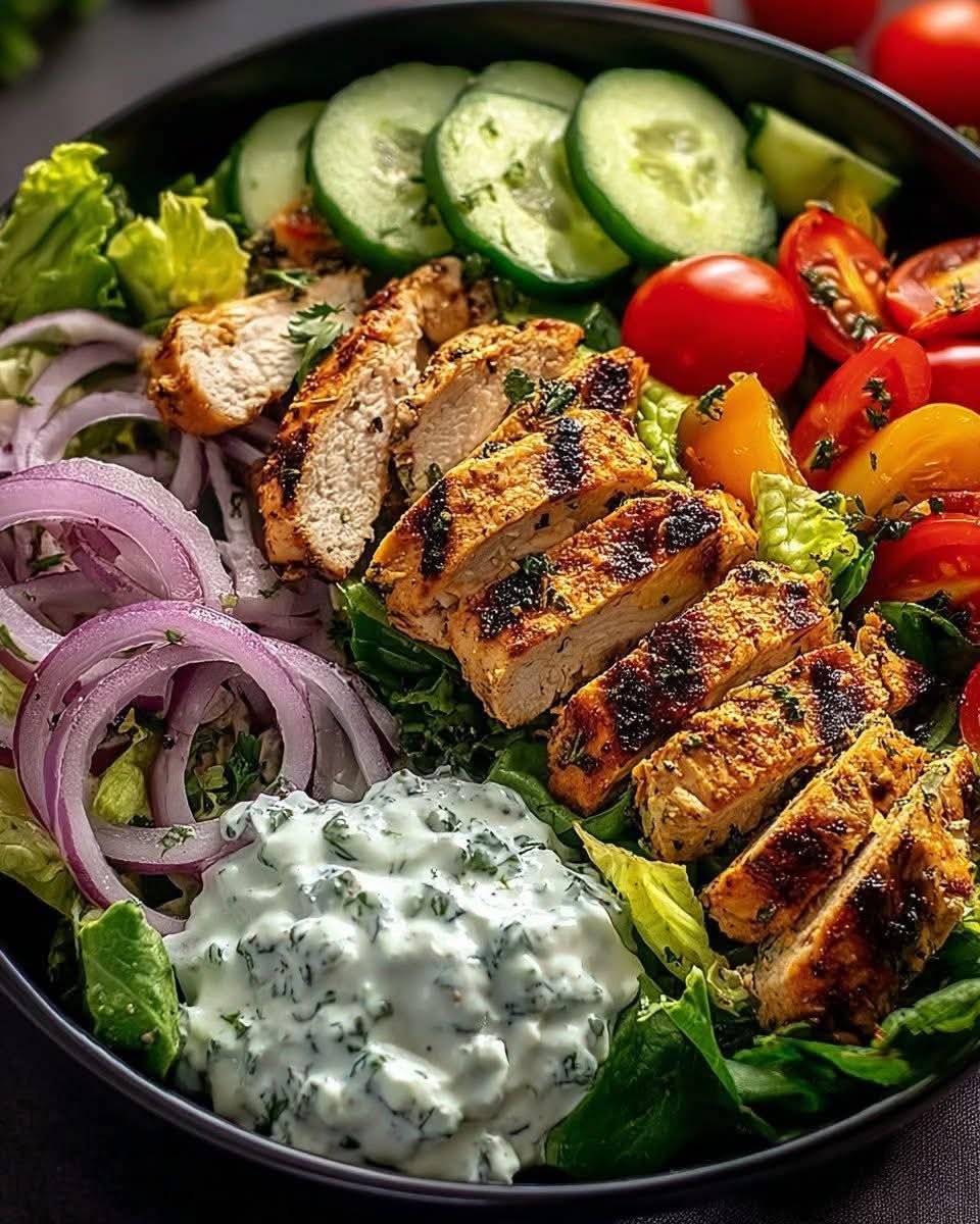 Here’s a mouthwatering recipe for an Ultimate Grilled Chicken Salad Bowl with Tzatziki – a refreshing, protein-packed Mediterranean-style meal that’s perfect for lunch or dinner.