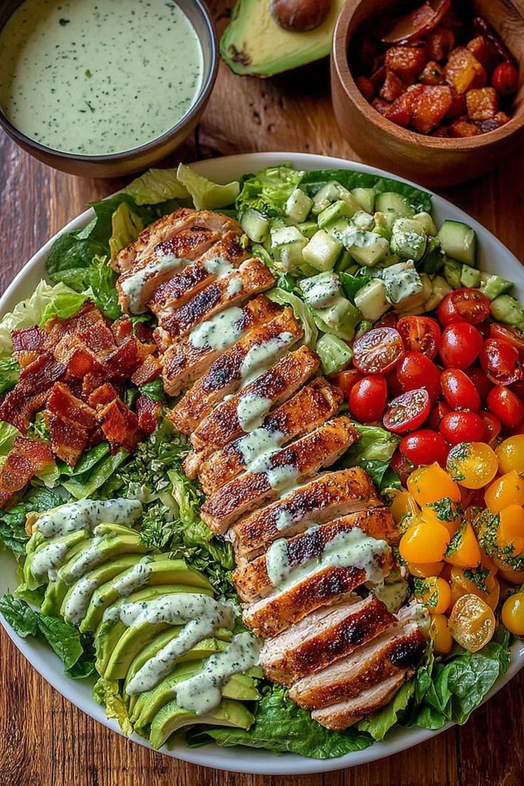 This ultimate loaded salad features juicy grilled chicken, fresh crisp veggies, creamy avocado, and a rich, herb-filled dressing that ties everything together. It’s refreshing yet filling — a perfect balance of lean protein, healthy fats, and fiber, all in one bowl.