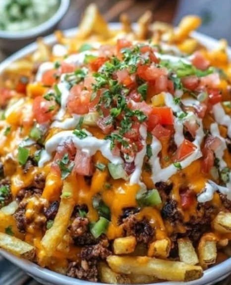 These Ultimate Loaded Nacho Fries are the perfect indulgent snack, appetizer, or game-day treat! Crispy, seasoned fries are smothered in gooey cheese sauce, loaded with juicy seasoned ground beef, and topped with all your favorite nacho fixings. Whether you’re making them for a party or a solo treat, this recipe will satisfy your cravings for cheesy, spicy, and crispy goodness in every bite.