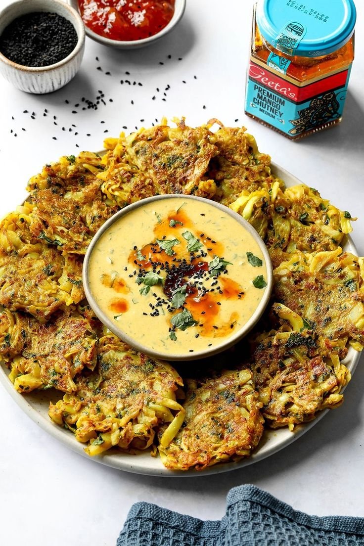 Vegan Cabbage Pancakes with Creamy Chickpea Dip