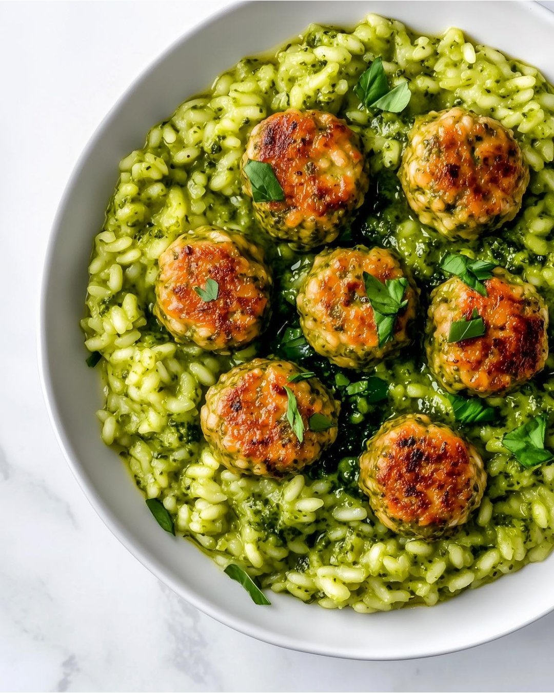 Silky, creamy risotto made with arborio rice and vegetable broth, topped with savory vegan meatballs. Perfect for a cozy dinner that feels special but is still wholesome and plant-based.