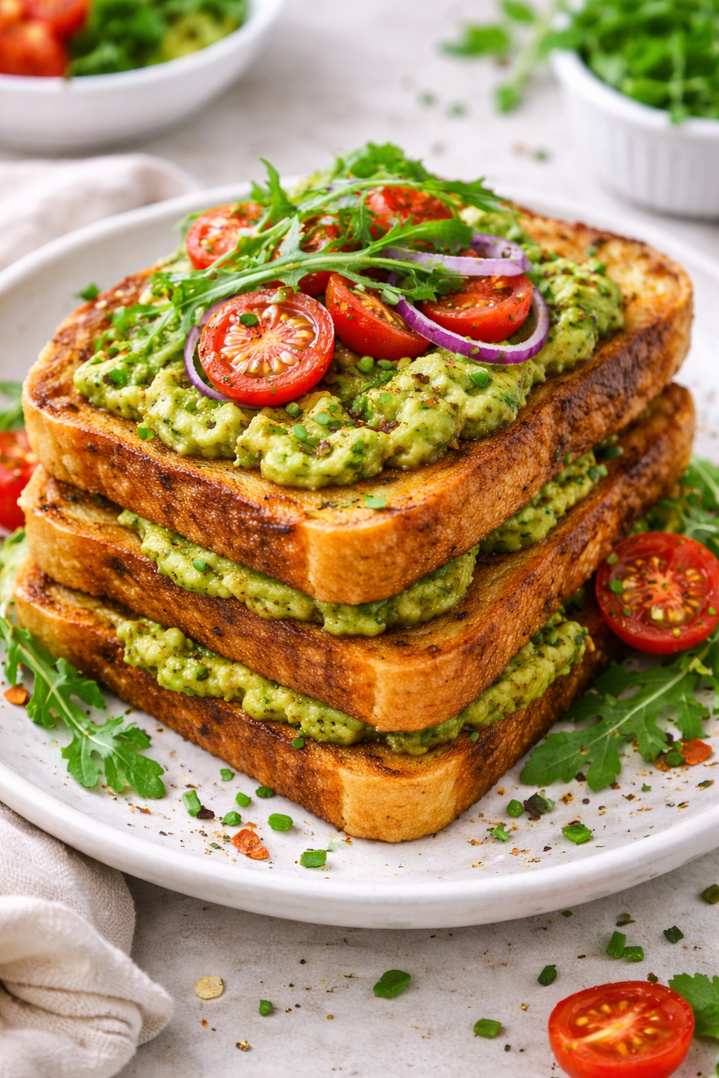 A delicious plant-based twist on classic French toast! This savory vegan version is crispy on the outside, soft inside, and topped with creamy avocado and fresh veggies. Perfect for a healthy breakfast or brunch 😍💚