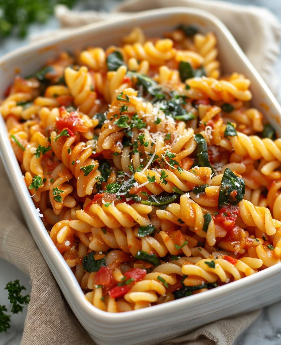 Al dente pasta tossed with juicy cherry tomatoes, sautéed garlic, and tender spinach, finished with olive oil, herbs, and a touch of tang. Quick, healthy, and full of flavor.