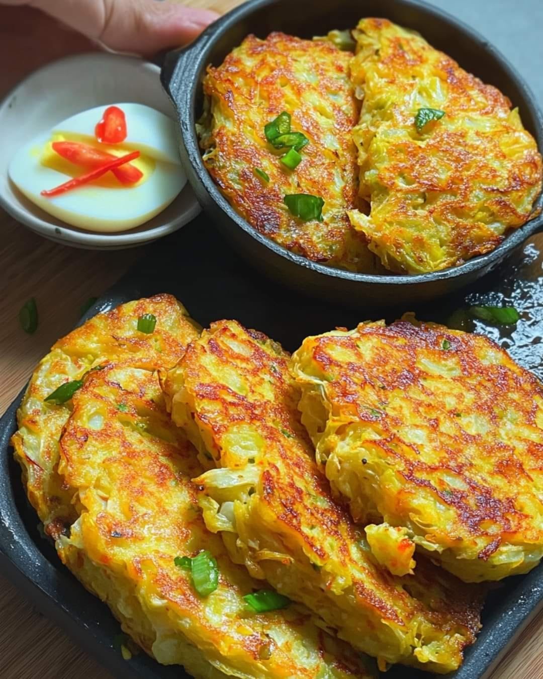Heat olive oil in a pan over medium heat. Scoop the batter into the pan, spreading it into a pancake shape. Cook for 3–4 minutes per side until golden brown and crispy.