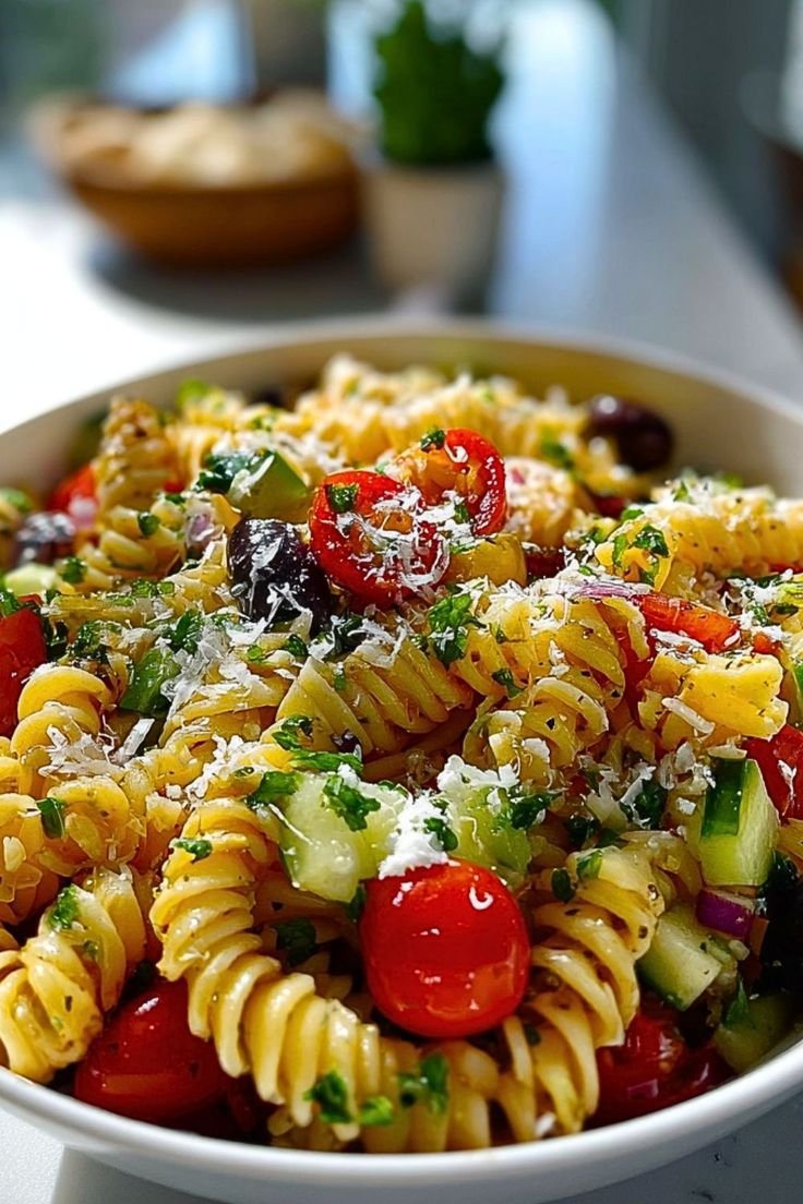 This Vegetarian Italian Pasta Salad with Lemon Juice Dressing is a light and refreshing dish packed with pasta, fresh vegetables, olives, and herbs tossed in a bright lemon-olive oil dressing. It’s perfect for picnics, potlucks, meal prep, or quick lunches.