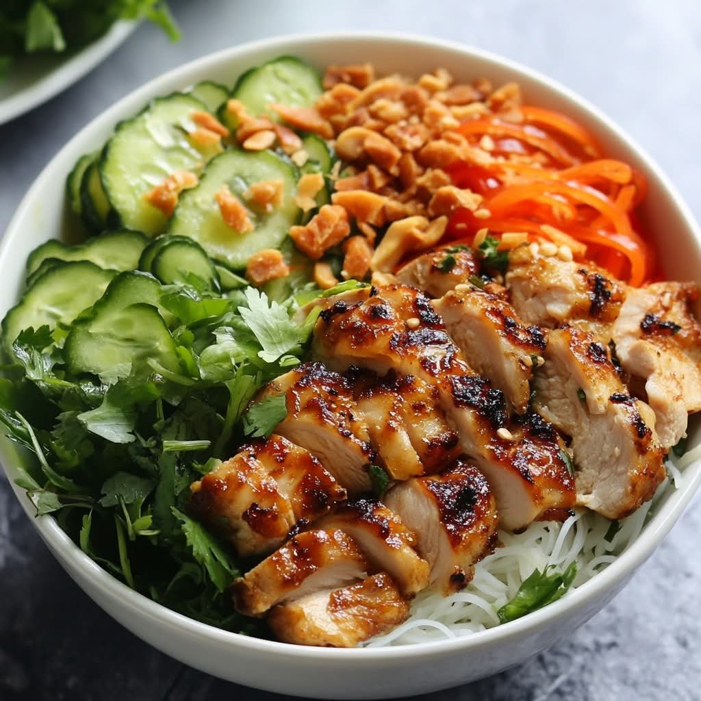 This refreshing and vibrant Vietnamese Lemongrass Chicken Bowl combines tender grilled or pan-seared chicken marinated in a zesty lemongrass blend with cool vermicelli noodles, crisp vegetables, fresh herbs, and a sweet-savory nuoc cham dressing. It’s a perfect balance of flavors and textures—savory, tangy, slightly sweet, and incredibly satisfying.