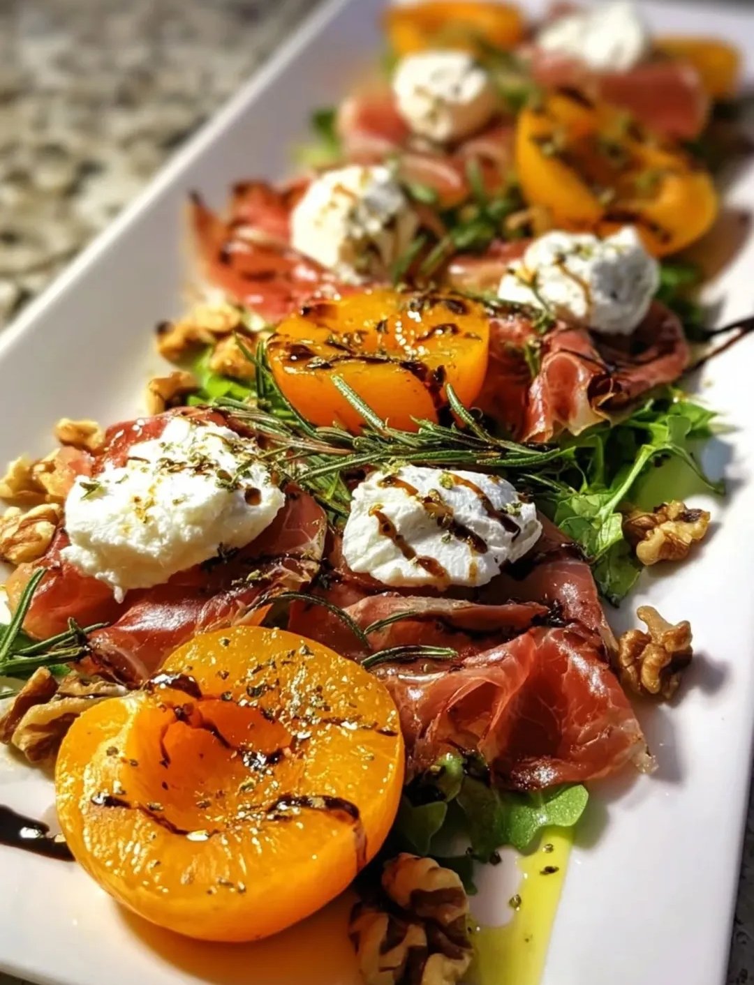 This warm Mediterranean salad pairs caramelized roasted apricots with fragrant rosemary, peppery greens, and a light honeyed vinaigrette.Sweet, herbal, and gently tangy, it’s inspired by Southern French and Greek coastal cuisine, where fruit is often used in savory dishes.Perfect as a starter, light lunch, or elegant side dish.