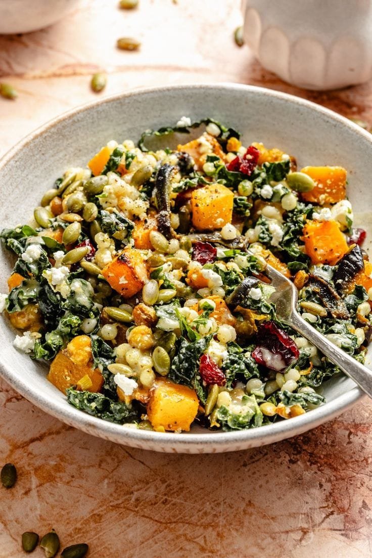 This cozy, wholesome salad celebrates the best of Mediterranean harvest flavors — roasted root vegetables, sweet squash, and earthy herbs, all tossed with light couscous and a zesty lemon-garlic dressing. It’s warm, hearty, and perfect for lunch or dinner on cooler days.
