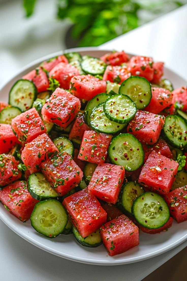 Watermelon Cucumber Salad is a refreshing, hydrating summer salad made with juicy Watermelon, crisp Cucumber, fresh herbs, and a light citrus dressing.The combination of sweet, crunchy, and tangy flavors makes this salad perfect for hot days, picnics, BBQs, or as a light healthy side dish.