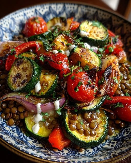 Wholesome Mediterranean Lentils with Roasted Vegetables & Creamy Tahini is the kind of meal that feels grounding and nourishing without being boring. It’s built around simple plant-based ingredients that deliver big flavor through smart seasoning, good olive oil, and careful cooking. Earthy lentils form the base, roasted vegetables add sweetness and texture, and the tahini sauce ties everything together with a creamy, lemony finish. This dish works beautifully as a main course, a hearty lunch, or even a make-ahead option for busy weeks. It’s satisfying, colorful, and fits naturally into a Mediterranean-style way of eating focused on whole foods and balance.