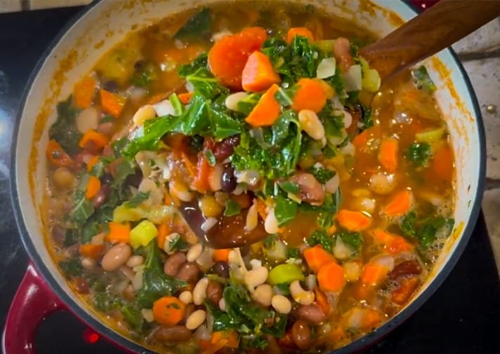 I’m sharing a delicious recipe for bean and lentil soup with greens.