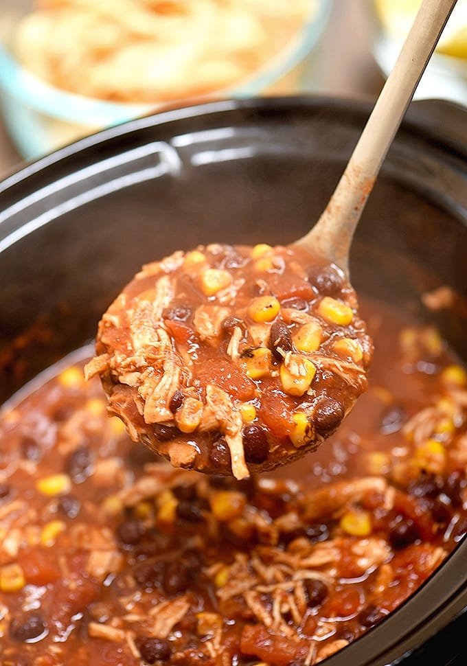 3. Add the shredded chicken, chopped tomatoes, corn, black beans, and chicken broth to the mixture. Bring the mixture to a simmer slowly.