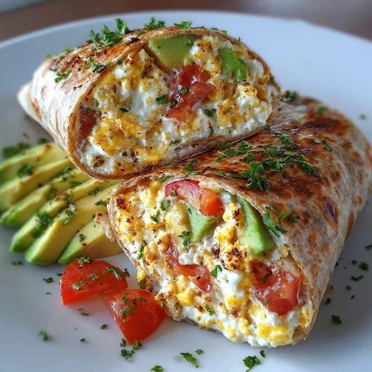 Unlike traditional breakfast burritos loaded with heavy cheese and sausage, this version is light, nutrient-dense, and packed with fresh flavors. Cottage cheese adds creaminess and protein without excessive fat, while avocado contributes heart-healthy fats and a silky texture. The cilantro and diced tomatoes bring brightness, making every bite refreshing and zesty.